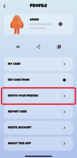 Pergi ke menu Profile > Pilih menu Invite Your Friend